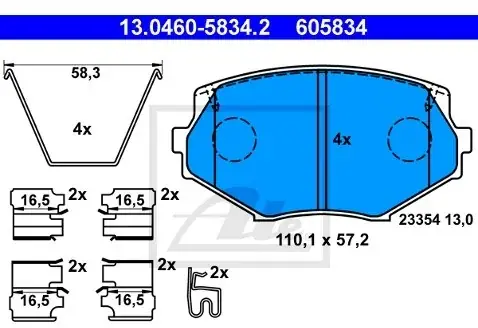 ECE-R90 Numer WVA: 23694 Grubość [mm]: 16,25 Szerokość [mm]: 112,1 Wysokość [mm]: 73,1 Ograniczenia producenta: