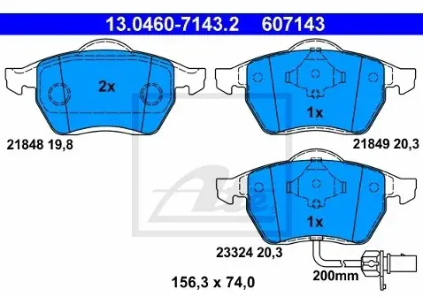 Szerokość [mm]: 131,1 Wysokość 1 [mm]: 69,8 Wysokość 2 [mm]: 62,1 Grubość [mm]: 19,8 Styk ostrzegawczy o zużyciu: