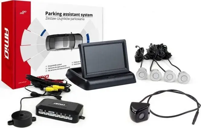 Asystent parkowania kompletny zestaw czujniki + kamera z wyświetlaczem. W skład zestawu wchodzi : wyświetlacz czujniki kamera centralka kompletne okablowanie Kamera i czujniki załączają się automatycznie w momencie wrzucenia biegu wstecznego. Czujnik parkowania stanowi niezastąpioną pomoc zarówno podczas jazdy jak i w czasie parkowania. Tylne sensory ułatwiają parkowanie nawet dużym samochodem, a wejście na kamerę cofania umożliwia nam dokładną obserwację strefy za pojazdem. Czujnik posiada wbudowany mikser wideo dzięki czemu może wyświetlać obraz z podłączonej kamery cofania i wygenerowany cyfrowo wskaźnik odległości. Urządzenie szczególnie przydatne jest na zatłoczonych parkingach, podczas opadów deszczu czy śniegu i przy ograniczonej widoczności np. w nocy. Określając nam odległość i kierunek od przeszkody możemy uniknąć niepotrzebnych wydatków i wielu nieprzyjemności spowodowanymi już najmniejszymi otarciami zderzaka. Skład zestawu: 4- sensorowa centralka-LCD, 4 czujki czarne TRUCK, bardzo wydajny głośnik, kamera cofania CAM-301 IR 28mm wyświetlacz TFT 4,3 calowy, otwornica do wywiercenia otworów w zderzaku. Kamera cofania CAM-301 IR 28mm to nowoczesna kamera z funkcją $124Night vision$125- dodatkowe diody IR zapewniają doświetleni. Wyświetlacz TFT 4,3 calowy dużej rozdzielczości, doskonale pokazuje Obraz przestrzeni znajdującej się bezpośrednio za pojazdem. Czujnik parkowania jest urządzeniem wspomagającym parkowanie i cofanie samochodu. Działa na zasadzie sonaru – emituje fale ultradźwiękowe, które po odbiciu od przeszkody pozwalają stwierdzić, jaka odległość dzieli samochód od przeszkody. W czasie cofania urządzenie poprawnie rozpoznaje przeszkody znajdujące się na drodze pojazdu i ostrzega kierowcę sygnalizując dźwiękiem (odpowiedni do odległości od przeszkody) lub za pomocą wyświetlacza LED. Pełna specyfikacja: Rozdzielczość 480 x 234 Kamera CAM-301 IR 28mm nowoczesna kamera z funkcją $126Night vision$127- dodatkowe diody IR zapewniają doświetlenie Alarm dźwiękowy Zasięg/czułość działania 0-2,5m Zasilanie 12V Częstotliwość pracy 40KHz Temperatura pracy -30C +70C Średnica montażowa 28mm